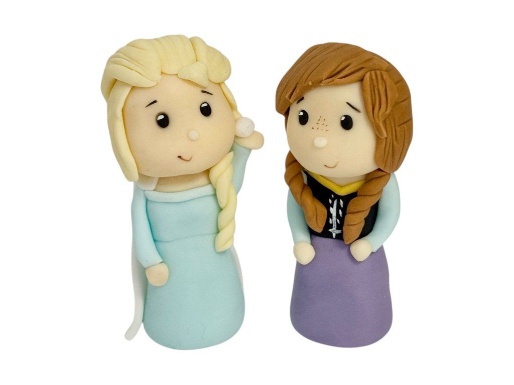 Sada dekorácii na tortu, vyrobená z modelovacej hmoty Smartflex Velvet.Sada obsahuje 2 ks figúrok v rozmere: Anna a Elza 10 cm (výška).