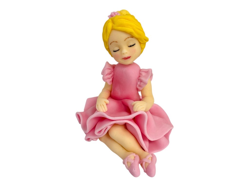 Elegantná ručne modelovaná baletka v ružových šatách je ideálnou ozdobou na tortu pre malé princezné a milovníčky tanca.Figúrka je detailne prepracovaná – s jemnou tváričkou, ružovými baletnými šatkami a krásnou sukničkou s volánmi.