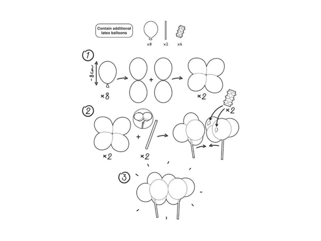 Sada obsahuje: 8 ks balónikov, 2 ks slamky a 6x úchytka na uchytenie balónov.