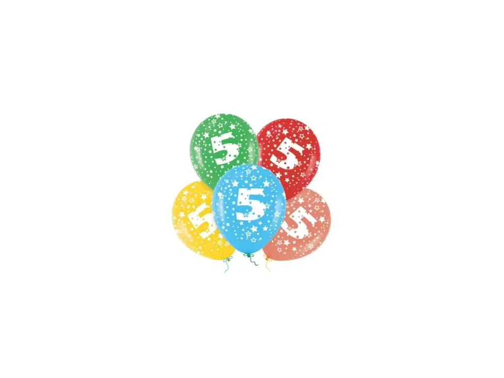 Gumené balóny – číslo 5.Gumené balóny sú jedinečným, estetickým doplnkom každej párty, či spoločenskej udalosti. Pripravte tematickú balónovú výzdobu v deň narodenín a vykúzlite nezabudnuteľný deň pre oslávenca aj hostí.