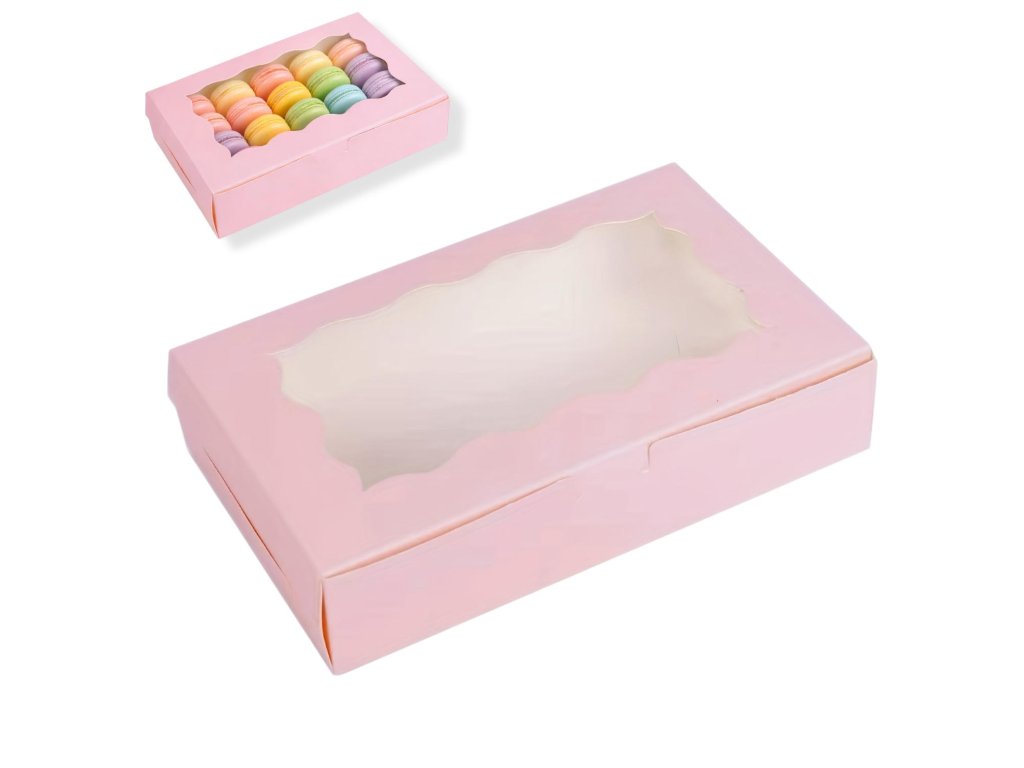 Papierová krabička dvojdielna s okienkom ideálna na cukrovinky, ale aj dekoračné predmety.Materiál: hladká lepenka.