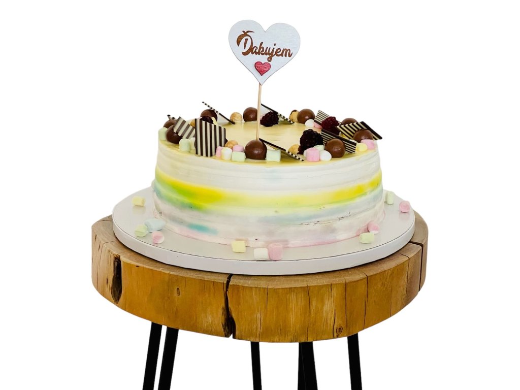 Drevený zápich, vyrobený z kvalitného pevného materiálu. Uchytený na špajli.Zápich je určený, ako dekorácia na tortu.