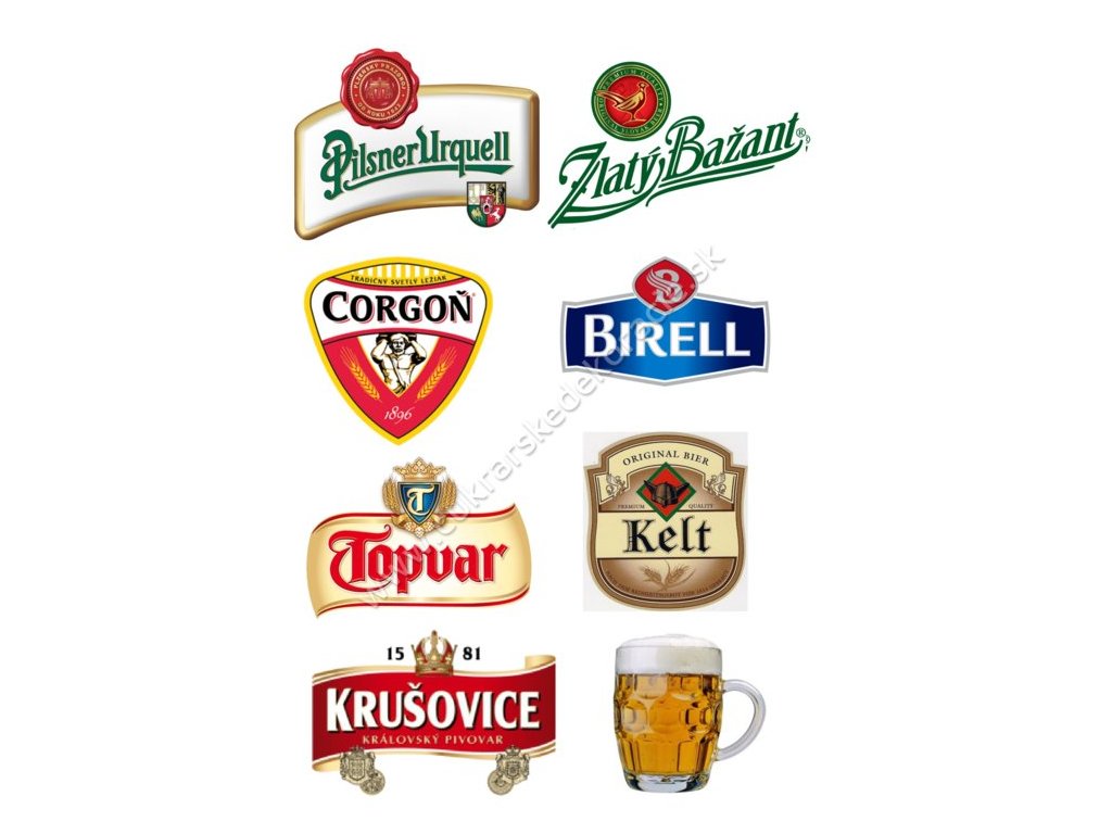 Fondánový obrázok na tortu.s logami najobľúbenejších Slovenských pív.Výška loga: cca 7cm.