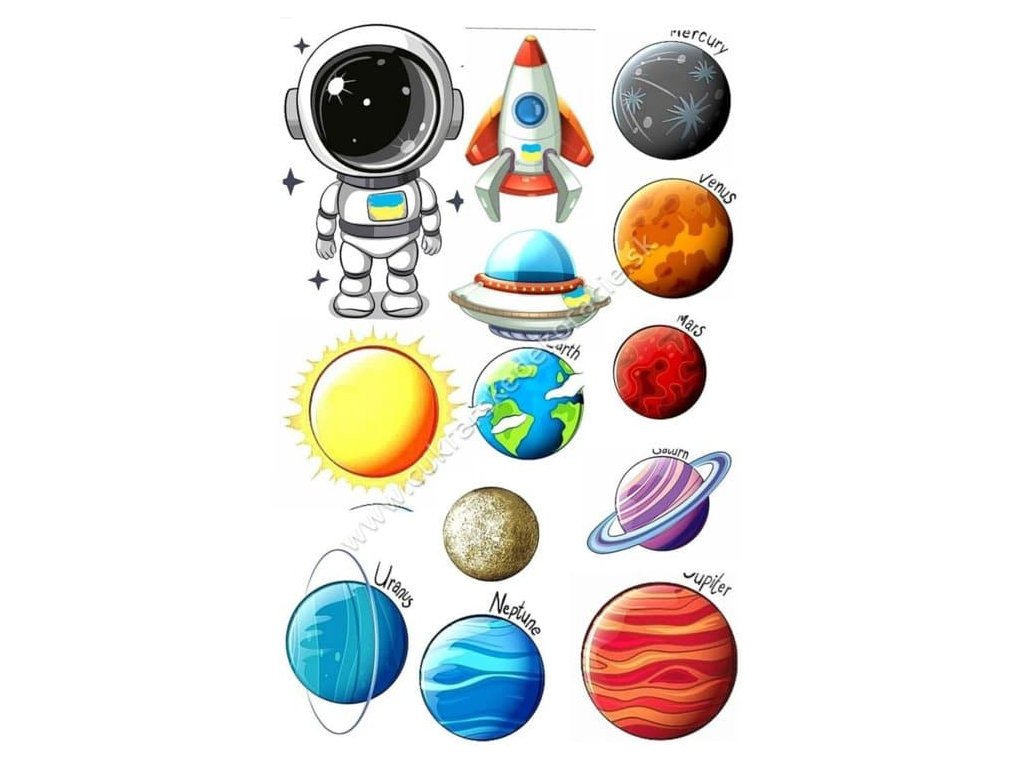Fondánový obrázok z témou Vesmír.Rozmer obrázku: strana A4