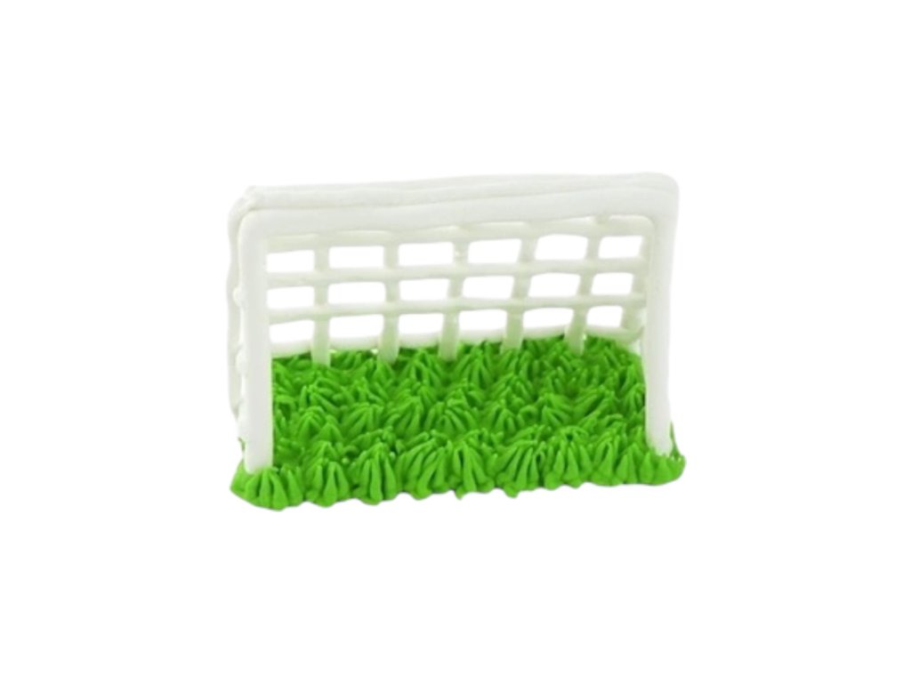 Dekorácia na tortu, vyrobená z modelovacej hmoty.Tento originálny cukrový doplnok v tvare futbalovej bránky s trávnikom je ideálny na tematické torty pre športových nadšencov. Biela bránka s realistickým zeleným trávnikom prinesie tú pravú futbalovú atmosféru na každú oslavu.