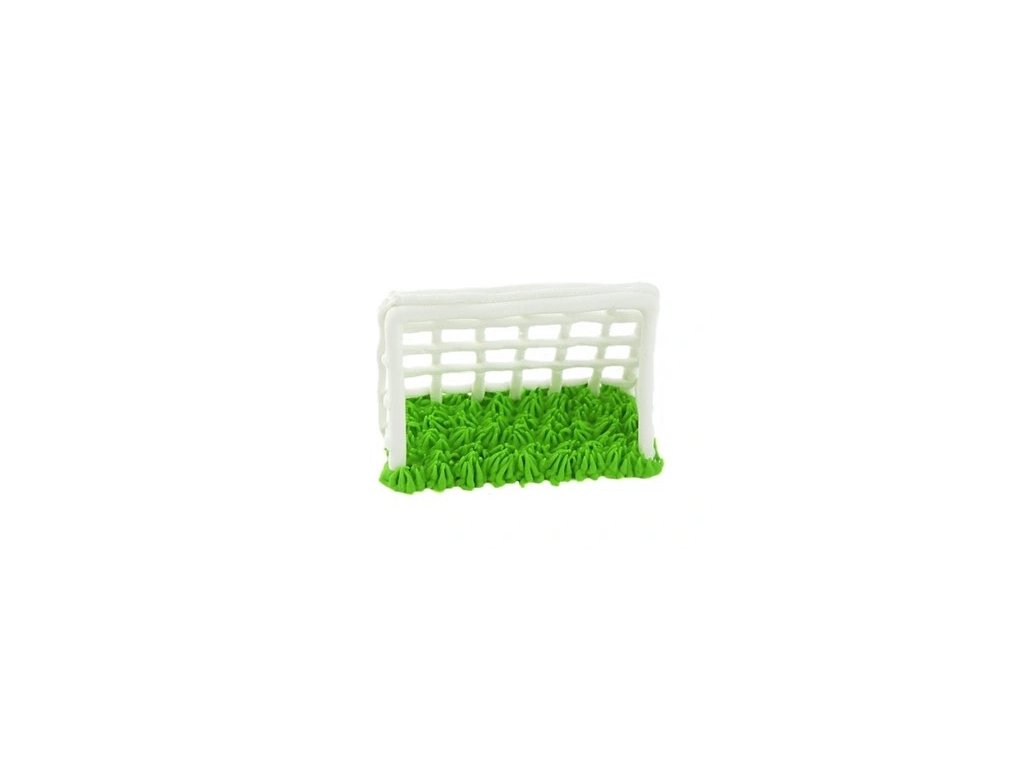 Dekorácia na tortu, vyrobená z modelovacej hmoty.Tento originálny cukrový doplnok v tvare futbalovej bránky s trávnikom je ideálny na tematické torty pre športových nadšencov. Biela bránka s realistickým zeleným trávnikom prinesie tú pravú futbalovú atmosféru na každú oslavu.
