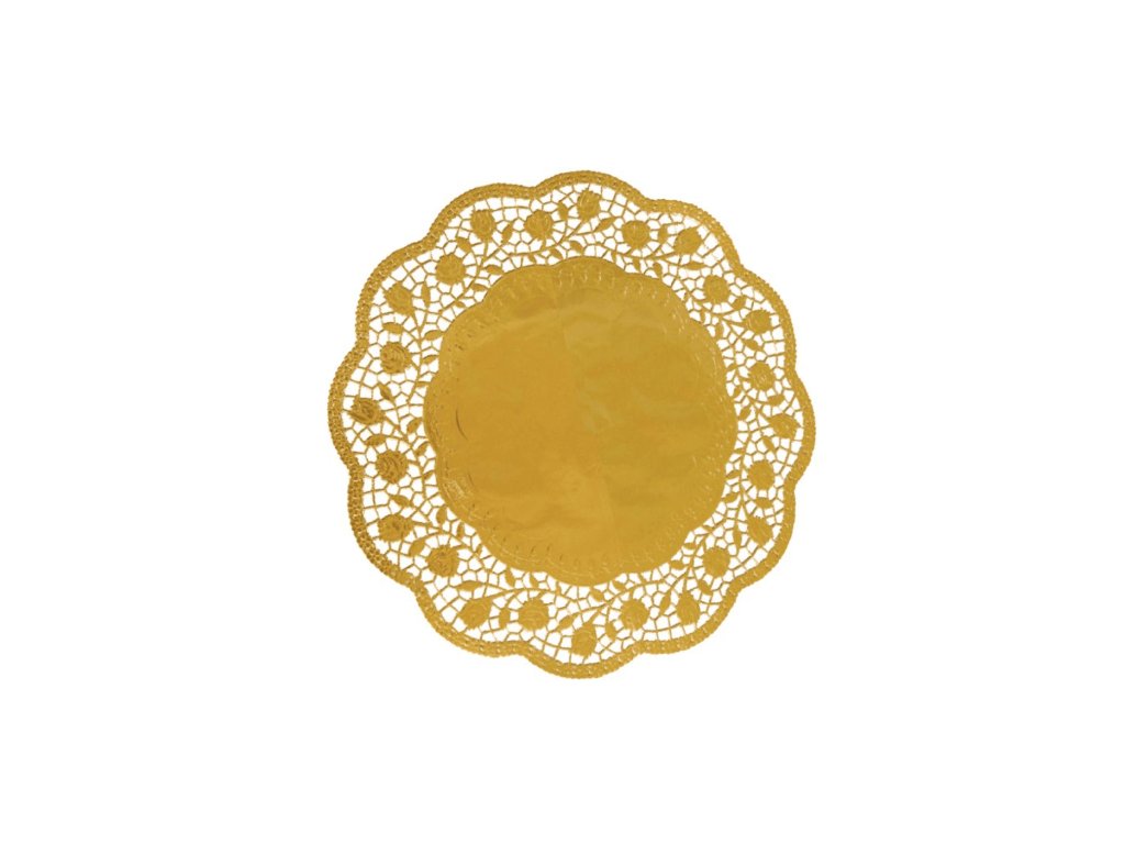 Dekoračný krajkový papier pod tortu.Papierové dekoratívne krajky sú v zlatom farebnom vyhotovení, okrúhleho tvaru a výborne poslúžia pri servírovaní cukrárenských výrobkov a iných špecialít. Sú vhodné predovšetkým na použitie pod rôzne torty, lahodné zákusky, rôzne drobné slané a sladké pečivo. Dekoratívne krajky si vďaka svojmu univerzálnemu použitiu nájdu uplatnenie taktiež pri stolovaní v reštaurácií, kaviarni, hoteloch, cukrárni aj pri výnimočných príležitostiach, ako sú hostiny, rodinné oslavy či svadby.