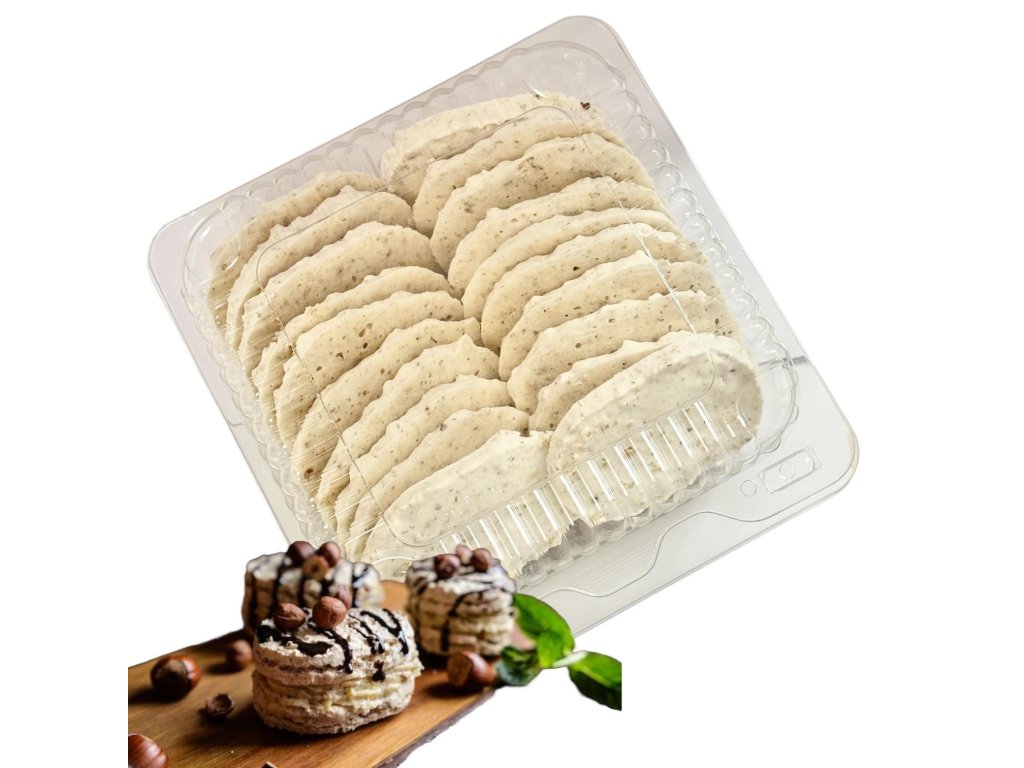 Cukrárensky polotovar – laskonky orechové.Počet ks v balení: 20 ks/10 párov.