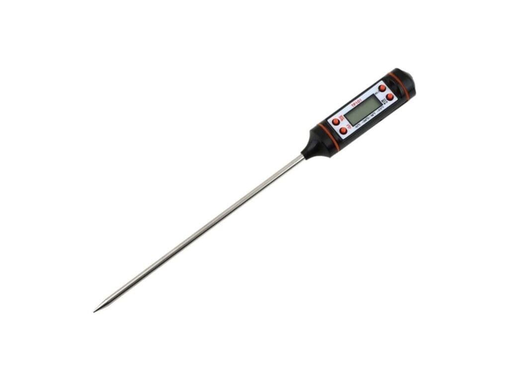 Vpichový teplomer s LCD displejom s oceľovou ihlicou. Môže merať teplotu v rozsahu -50°C – 300°C. Je vhodný na odmeranie teploty v jedlách, olejoch a tekutinách, napríklad zistenie teploty vo vnútri mäsa pri grilovaní, pečení, teploty pri varení tekutín.