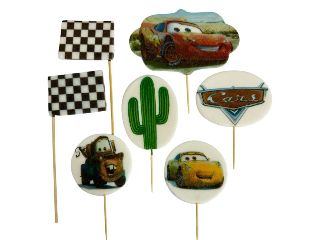 Rozbehni každú oslavu na plné obrátky s veselou McQueen sadou jedlých dekorácií. Postavičky z animovanej rozprávky dodajú torte energiu, rýchlosť a zábavu, ktorú si zamiluje každý malý fanúšik autíčok.Sada obsahuje 7 ks 2D fondánových zápichov v rozmere: Mc Queen motív od 11 do 6 cm, vlajky 2 ks 6 cm (dĺžka).