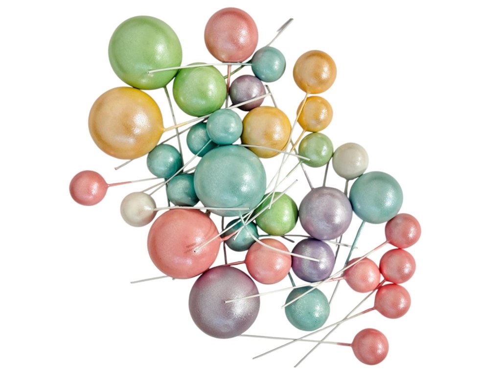 Sada plastových guličiek v rôznych veľkostiach. Ideálne na dozdobenie narodeninovej, či krstinovej tortičky. Miešajte rôzne veľkosti, aby ste vytvorili zaujímavý vizuálny efekt.Pamätajte, že plastové guličky sú iba dekoratívne nie sú na konzum. Pred podávaním torty je vždy dobré informovať hostí.