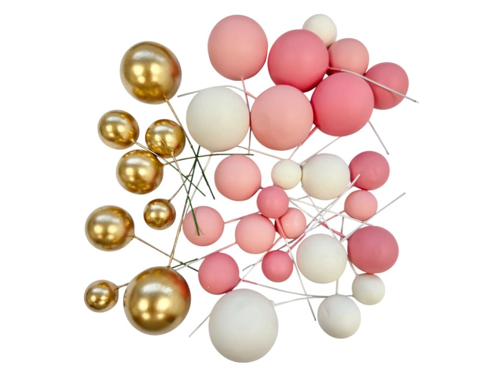 Sada plastových guličiek v rôznych veľkostiach. Ideálne na dozdobenie narodeninovej, či krstinovej tortičky. Miešajte rôzne veľkosti, aby ste vytvorili zaujímavý vizuálny efekt.Pamätajte, že plastové guličky sú iba dekoratívne nie sú na konzum. Pred podávaním torty je vždy dobré informovať hostí.