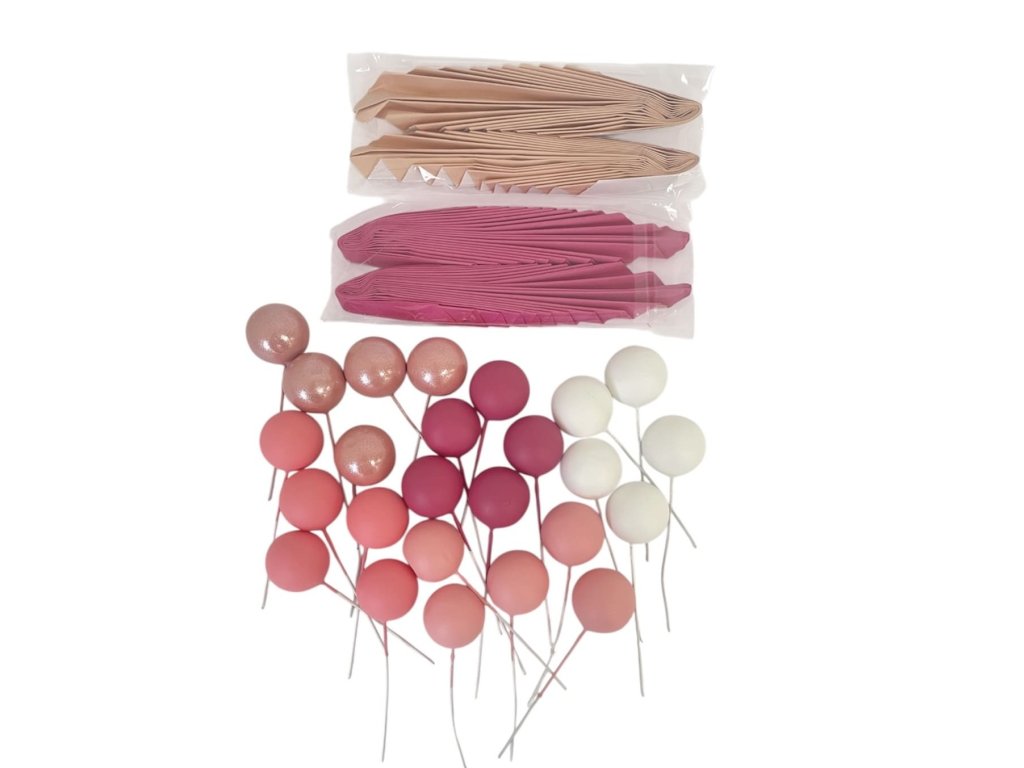 Sada plastových guličiek v rôznych veľkostiach s papierovými vejármi. Ideálne na dozdobenie narodeninovej, či krstinovej tortičky. Miešajte rôzne veľkosti, aby ste vytvorili zaujímavý vizuálny efekt. \n \nPamätajte, že plastové guličky sú iba dekoratívne nie sú na konzum. Pred podávaním torty je vždy dobré informovať hostí. \n \nVeľkosť guličiek: 2,5 cm. \n \nVeľkosť vejárov: 14,4 cm (výška). \n \nSada obsahuje: 25 ks plastových guličiek + 2 ks vejárov.Buďte prvý, kto napíše príspevok k tejto položke.