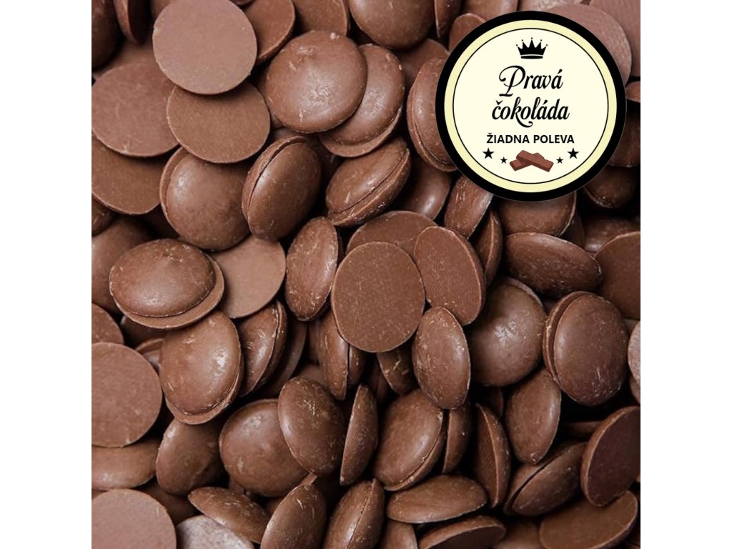 Pravá mliečna čokoláda najvyššej kvality vo forme peniažkov. Kakao min. 37 %.Pravá čokoláda je ideálna na výrobu parížskych krémov, ganáže, čokoládových figúriek a praliniek. Taktiež je vhodná na prípravu horúcej čokolády.