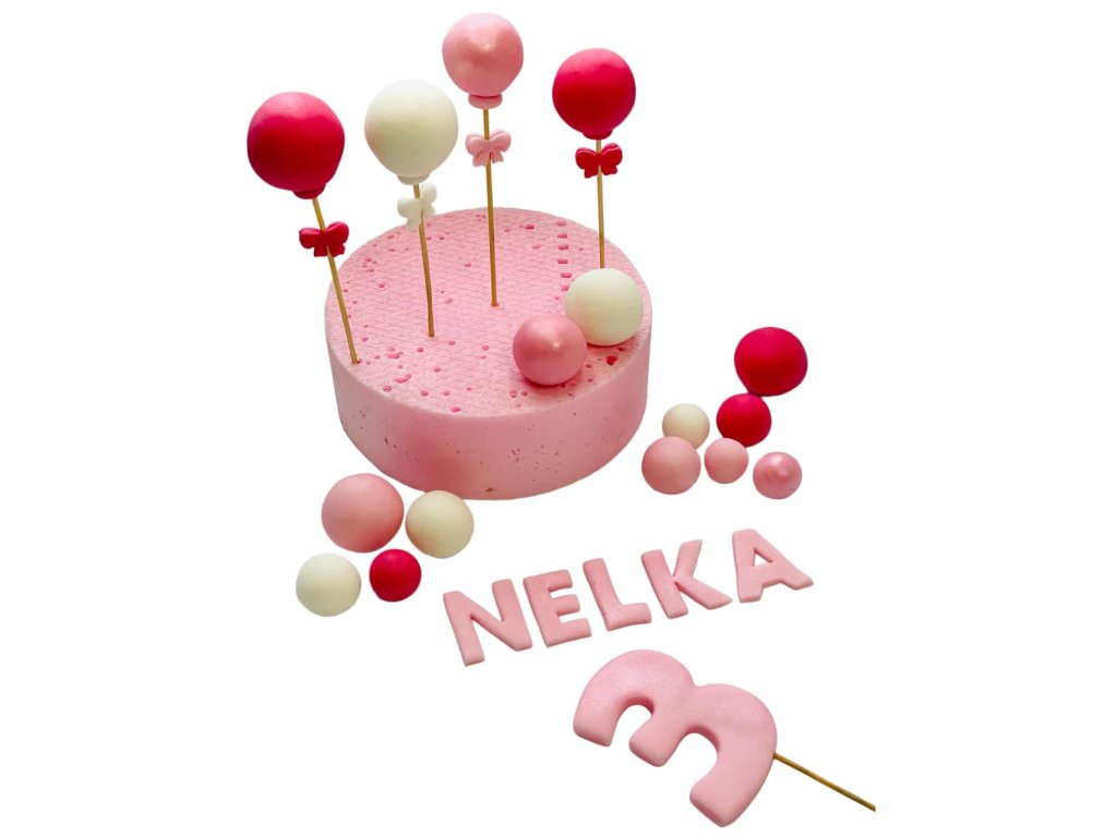 Sada dekorácií na tortu, vyrobená z modelovacej hmoty Smartflex Velvet. Figúrky na objednávku vyhotovujeme s dlhšou dodacou dobou 10-14 pracovných dní (dovoľujeme si Vás upozorniť víkend nie je rátaný, ako pracovný deň).Sada obsahuje 4 ks balónikov na paličke, číslovku na paličke, písmenká s menom a 12 ks guličiek v rozmere: balóniky 10 cm (výška), číslovka 8 cm (výška), písmenká 4 cm (výška), guličky od 2 do 4 cm (priemer). Po telefonickom dohovore vieme upraviť rozmer podľa Vašich predstáv (0908 897 545).