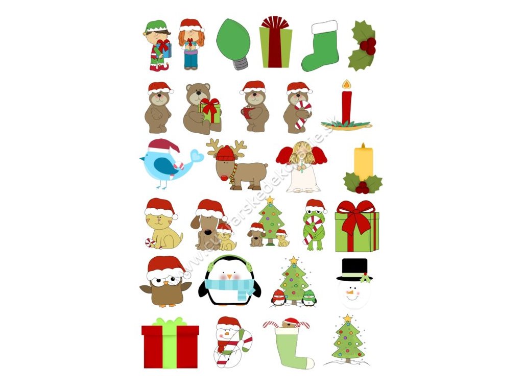 Vianočné obrázky určené na skrášlenie medovníčkov alebo iných Vianočných cukroviniek.Obrázky sú vytlačené na fondánovom liste v rozmere A4.