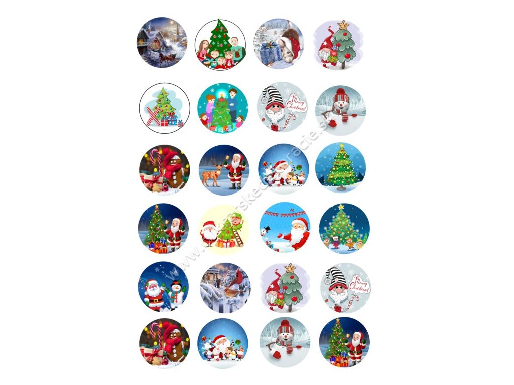Vianočné obrázky určené na skrášlenie medovníčkov alebo iných Vianočných cukroviniek.Obrázky sú vytlačené na fondánovom liste v rozmere A4.