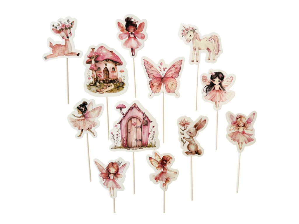 Papierová sada zapichovacích dekorácií. Vyrobená z kvalitného pevného papierového materiálu.Zápichy sú určené, ako dekorácia na tortu. Upevnené na špajdli.