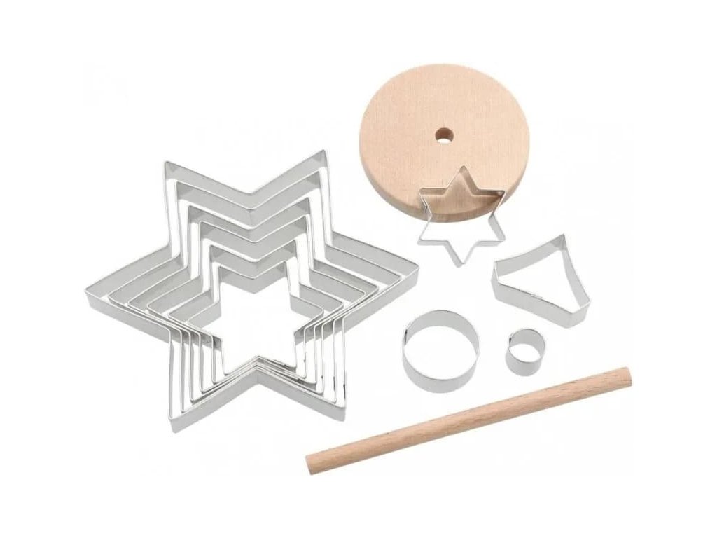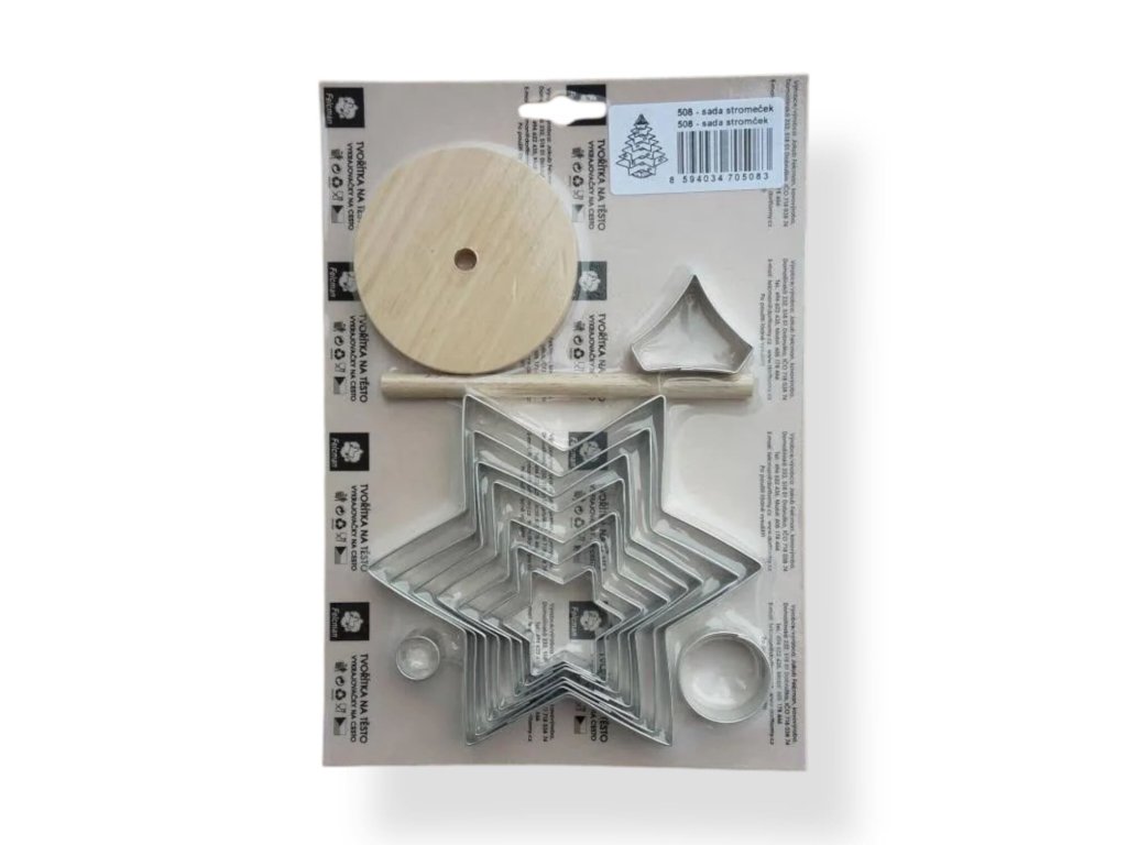 Sada plechových vykrajovačiek – určená na vyhotovenie 3D Vianočného stromčeka z perníka.Priemer hviezd: 4 – 13 cm.