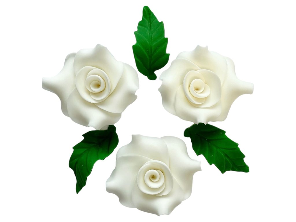 Balenie kvetov – ruží, vyrobených z modelovacej hmoty Smartflex Velvet.Balenie obsahuje ruže s lístkami s rozmermi: 3 ks ruža – 3×5 cm (VxŠ), 3 ks lístok – 6 cm (Dĺžka).