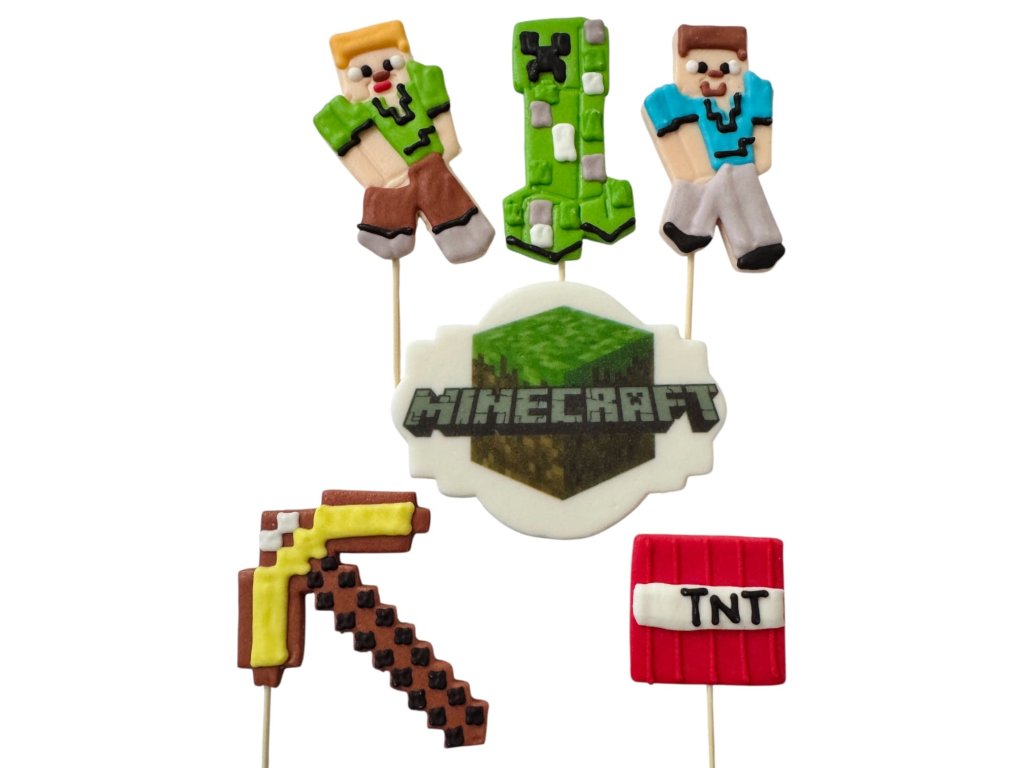 Sada dekorácii na tortu, vyrobená z modelovacej hmoty.Premeňte obyčajnú tortu na skutočné dobrodružstvo v štýle Minecraft! Táto sada je ideálna na narodeninové oslavy malých hráčov aj veľkých fanúšikov hry.