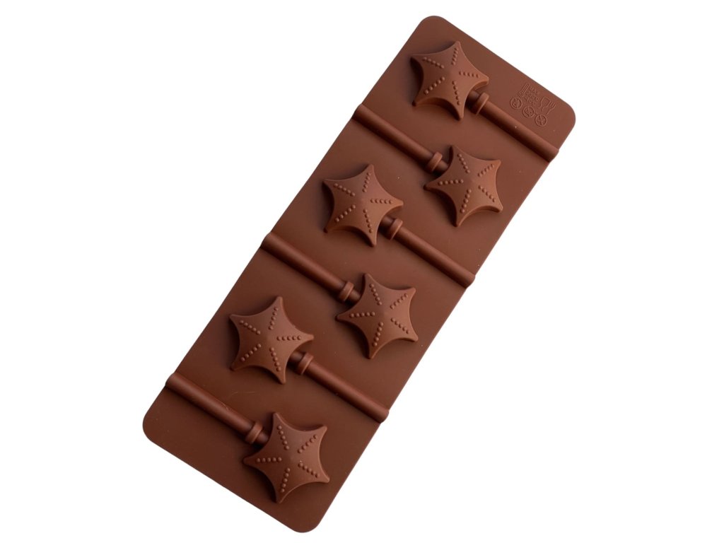 Silikónová forma na výrobu 6 ks lízatiek v tvare hviezdy.