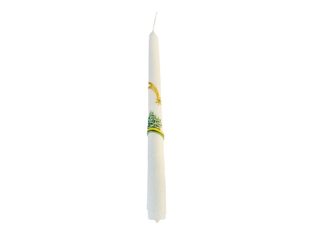Stolová sviečka vhodná do väčšiny svietnikov, nekvapká a horí vysokým čistým plameňom.