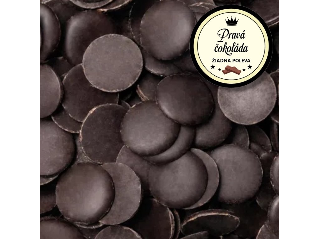 Pravá horká čokoláda najvyššej kvality vo forme peniažkov. Kakao min. 61 %. Bohatá, intenzívna chuť, krásna tmavá farba, hladká textúra.Pravá čokoláda je ideálna na výrobu parížskych krémov, ganáže, čokoládových figúriek a praliniek. Taktiež je vhodná na prípravu horúcej čokolády.