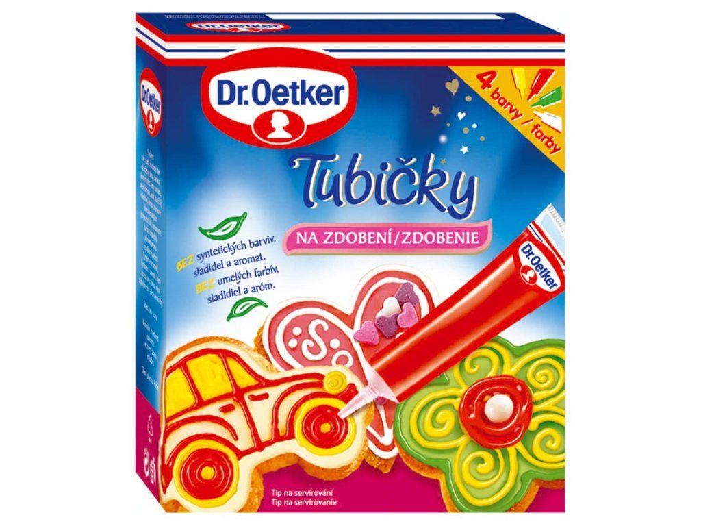 Cukrová poleva v tube na jednoduché zdobenie tort, zákuskov alebo pečiva.Hmotnosť: 76 g (4 tubičky po 19 g).