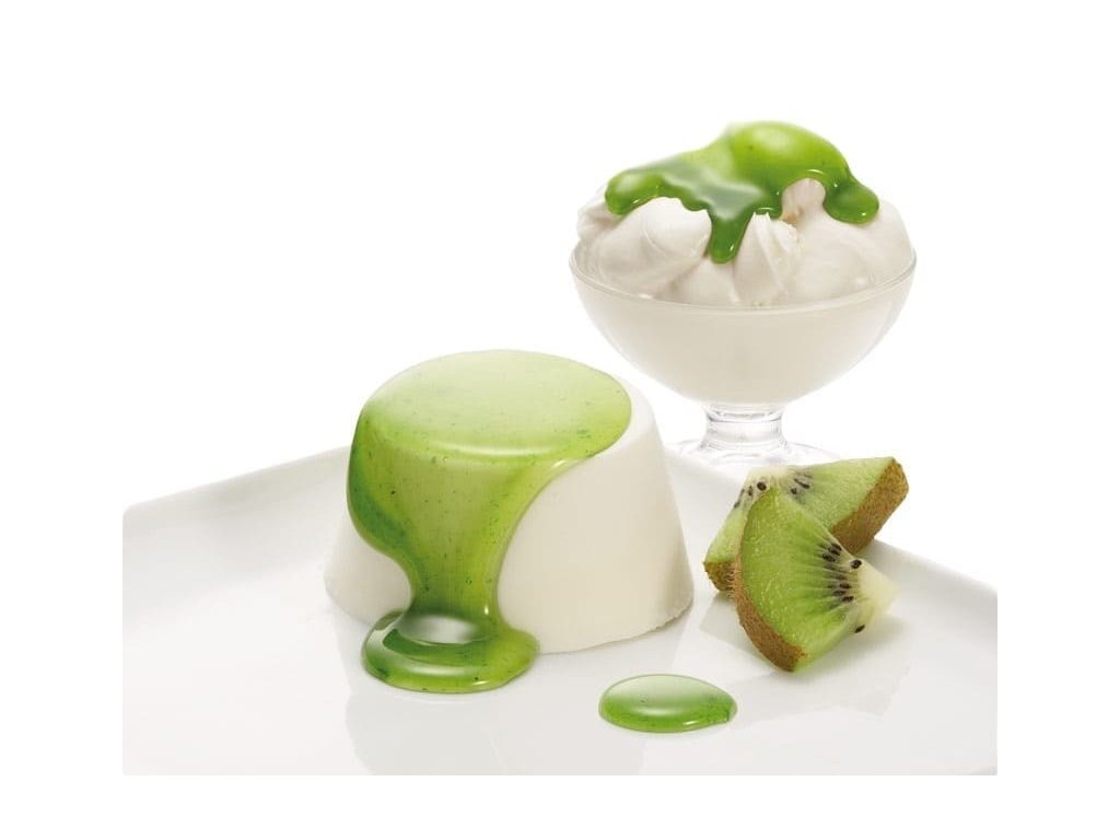 Zloženie: cukor, glukózový sirup, voda, kivi pyré (5%), zahusťovadlá (E440ii, E407, E341iii), regulátor kyslosti (kyselina citrónová), konzervant E202, farbivo (E141, E100), aróma.