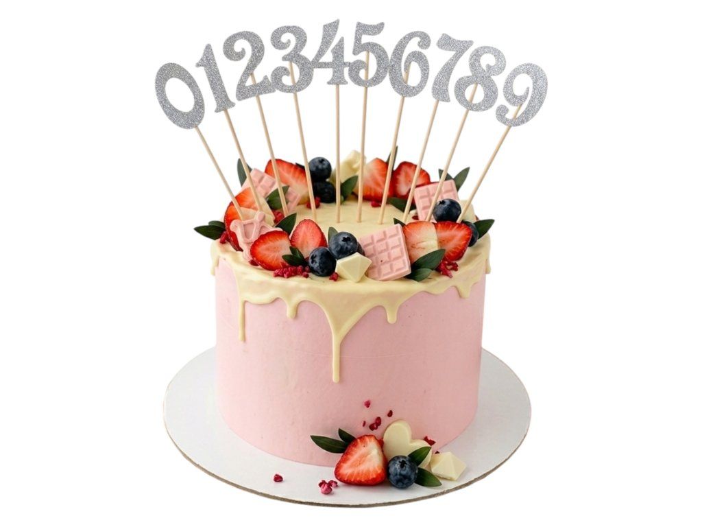 Dodajte svojej torte elegantný a slávnostný vzhľad s týmito striebornými číselnými zápichmi.